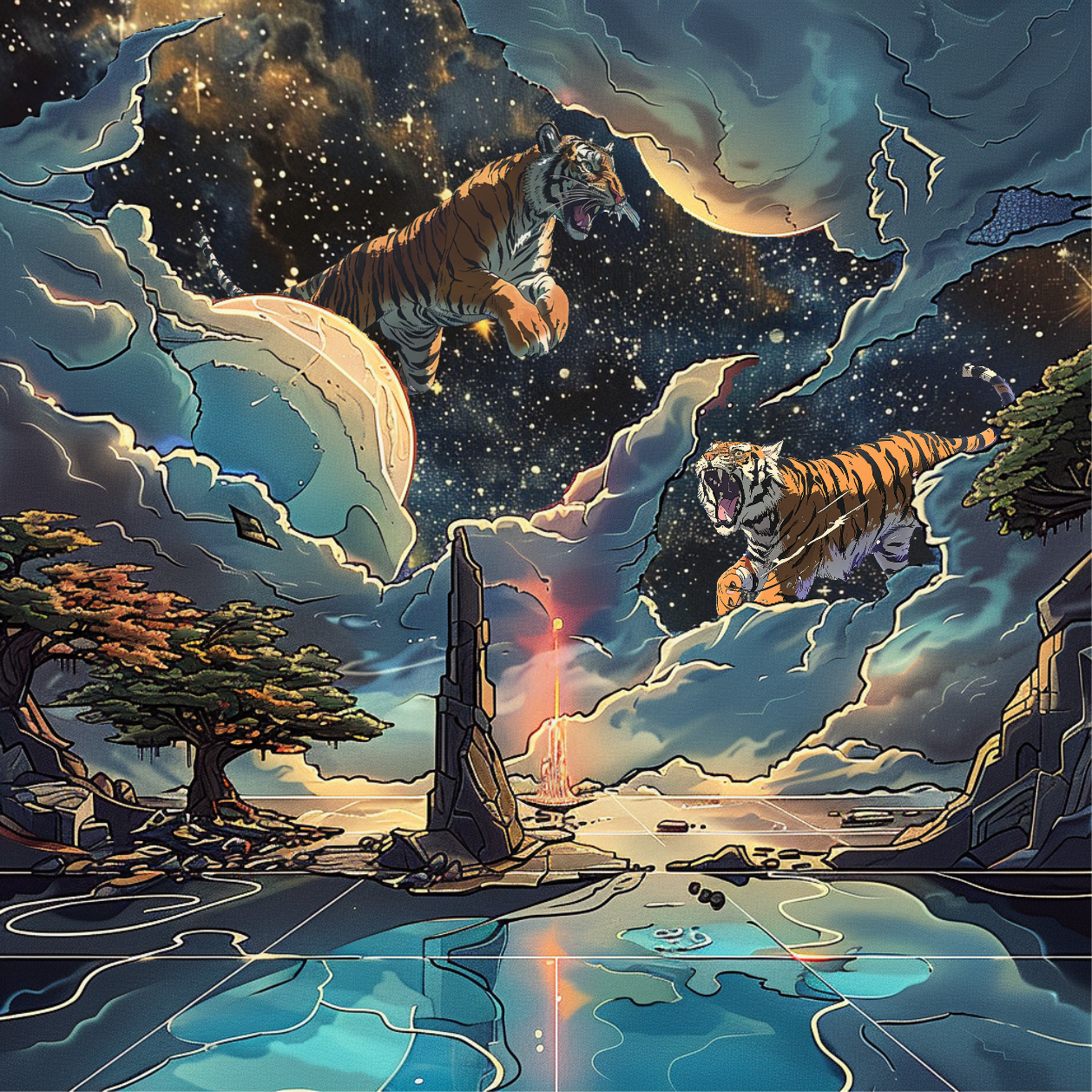 The process was fairly straightforward. I would use Midjourney to create images. Sometimes I would use a prompt, other times I would blend multiple images from my library.